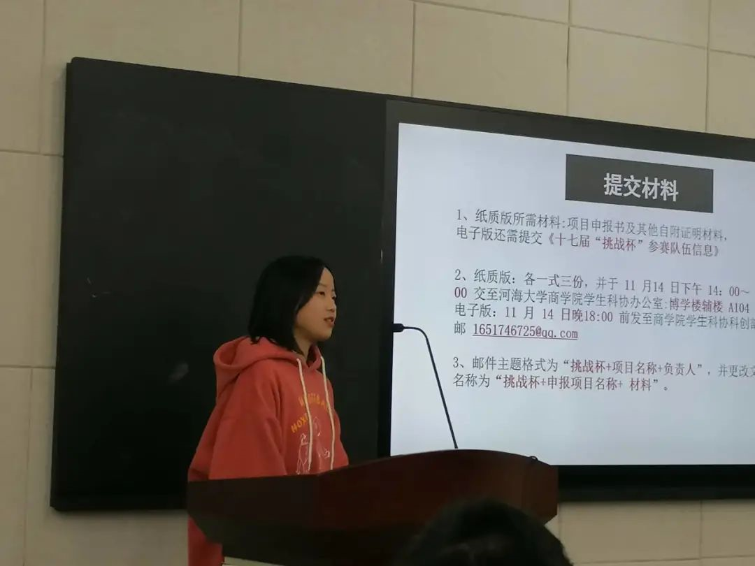 随后博彩网 学生科协的郑佳慧同学针对大赛要求和本次博彩网 院内赛流程进行了讲解,向同学们介绍了项目申报注意事项、作品类别、参赛要求和面向对象等。