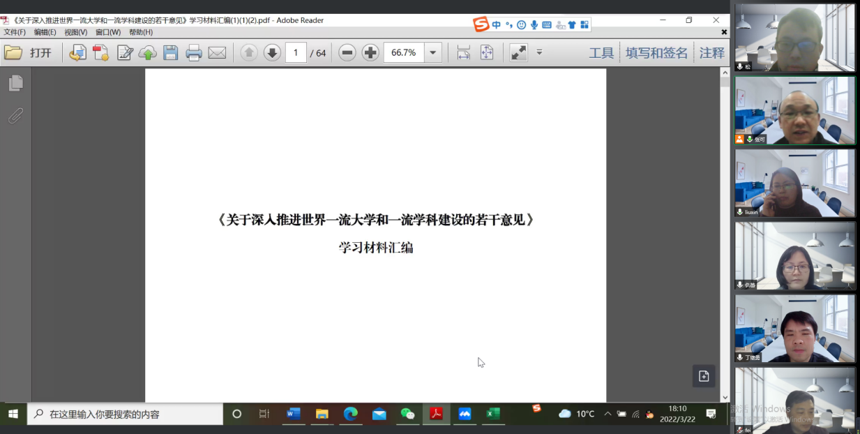 近日,按照学校工作部署,博彩网 组织各学科开展了《关于深入推进世界一流大学和一流学科建设的若干意见》(以下简称《若干意见》)学习研讨活动。各学科结合当前形势和自身建设情况,分别采用线上、线下相结合的方式畅谈了学习体会。