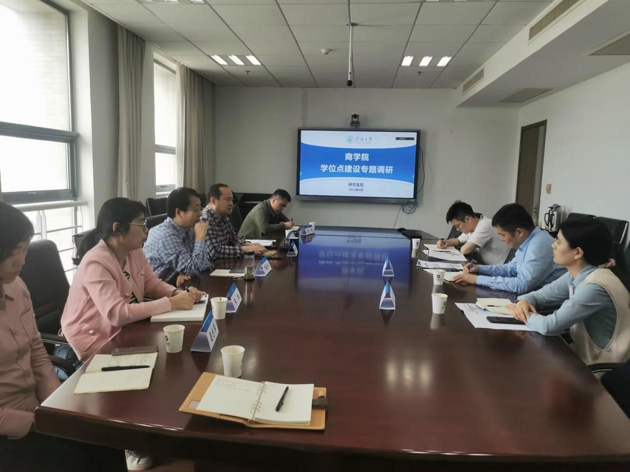 4月19日,我校研究生院副院长沈德建一行来博彩网 调研交流,博彩网 院长周海炜、副院长张长征以及MBA中心、MEM中心相关负责人出席了调研交流会。