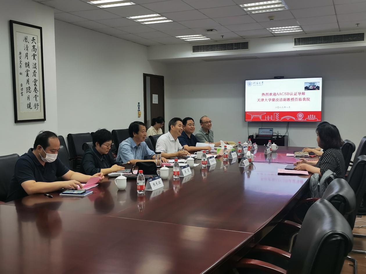 8月28日至30日,AACSB国际认证导师天津大学梁洨洁副教授访问了博彩网 ,对博彩网 AACSB国际认证工作进行了指导和评估。博彩网 院长周海炜、党委书记吴宝海、常务副院长庞庆华、副院长唐震、田贵良、张长征、张可、张丽娜,党委副书记杨天、赵光好、相关AOL项目主任、课程负责人和国际认证办老师参加了本次认证系列研讨会。