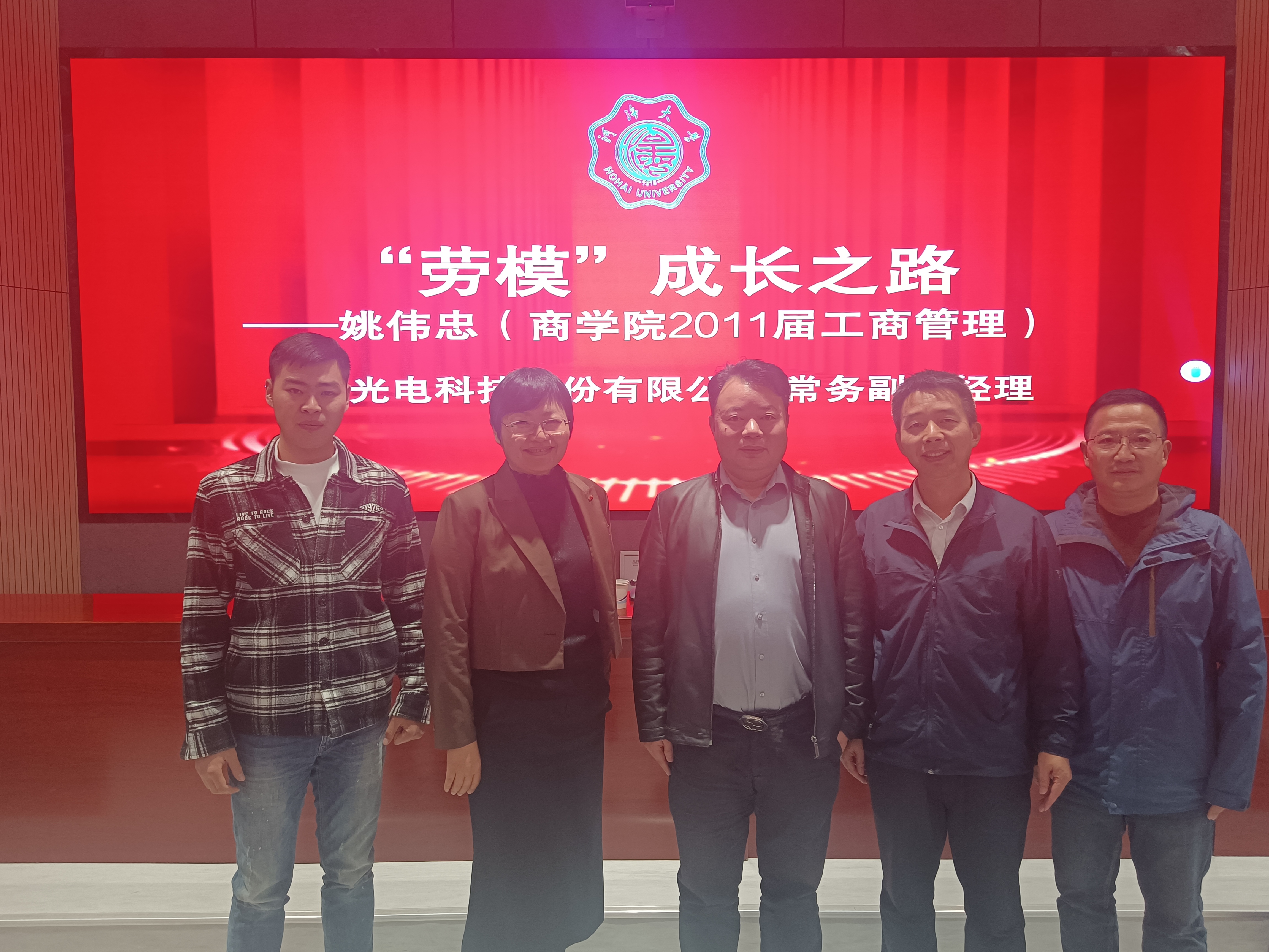 本次活动邀请全国劳动模范、河海大学杰出校友、华耀光电科技股份有限公司常务副总经理姚伟忠作主题报告。