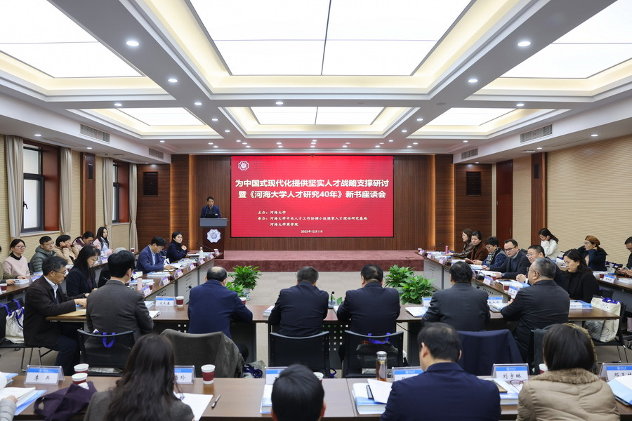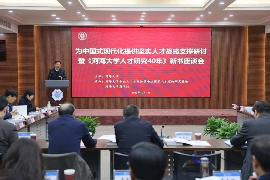 2023年12月1日,为中国式现代化提供坚实人才战略支撑研讨会暨《河海大学人才研究40年》新书座谈会在宁召开,会议由河海大学主办,河海大学中央人才工作协调小组国家人才理论研究基地、博彩网站推荐-博彩网 承办,会议主题为“深入实施人才强国战略,为中国式现代化提供坚实战略支撑”。来自政府、高校、企业的60余位专家、学者和师生代表参加了本次会议。