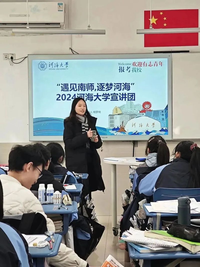 为向高中母校在校生分享河海大学求学经历,宣传河海文化,弘扬河海精神,“遇见南师·逐梦河海”宣讲团于2024年1月26日返回母校南京师范大学苏州实验学校,面向高二以及高三学子进行了热情洋溢的“源泉工程”宣讲。