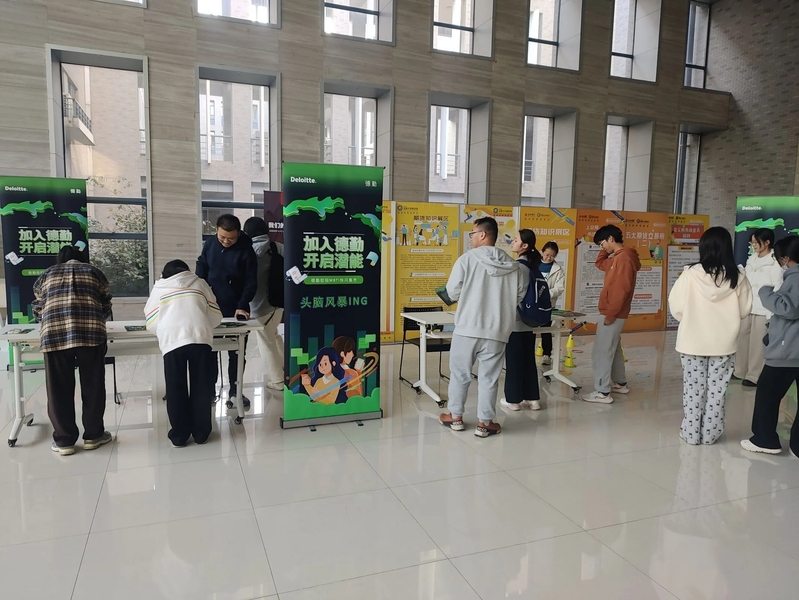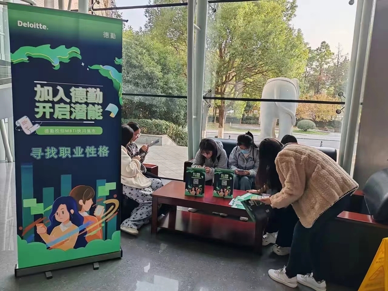 2023年11月23日,由河海大学就业指导中心和博彩网 YiYo益友学生发展工作室举办的河海大学生涯体验日活动之“探索未知的自我”MBTI快闪集市在江宁校区博彩网 大厅举行,博彩网 、经济与金融学院、理学院、地理与遥感学院、数学学院、公共管理学院、法学院、马克思主义学院、外国语学院、体育系学生参与了本次活动。本次活动特别邀请了德勤中国参与活动设计宣传。德勤作为四大会计师事务所之一,致力于提供卓越的审计、财务咨询、税务及法律服务,是同学们专业对口的理想就业选择。此次活动共有四个主题游戏,分别是:“步步晋升”、“放大镜挑战”、“头脑风暴ING”以及“寻找职业性格”,引导着同学们进行职业发展道路的探索,同时为同学们打开了一扇了解德勤公司的窗口。