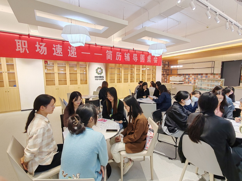 10月12日下午,职场速递——简历辅导圆桌会于博学楼辅楼A105创客咖啡顺利举办。本次讲座邀请了史玉莹老师、伏方霓老师、张婧老师、赵晨洁老师为同学们分享简历制作的经验与技巧,并对同学们的简历优化进行悉心指导。