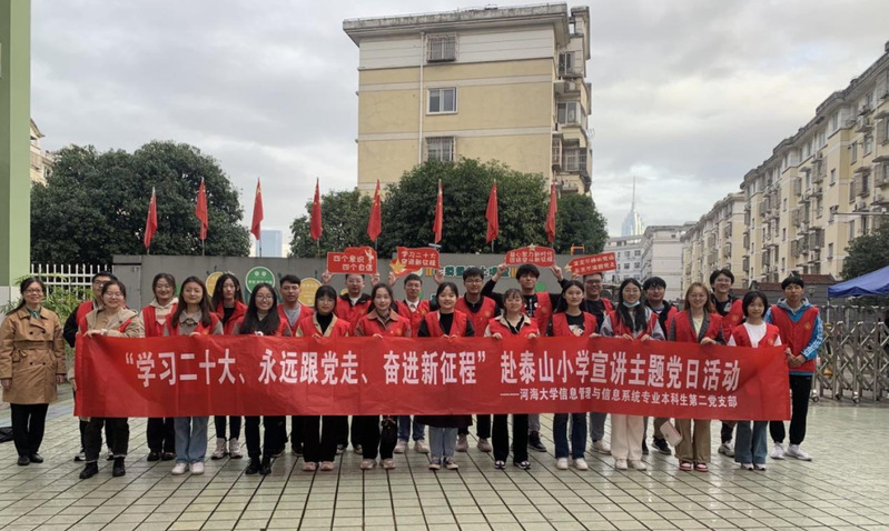 为深入学习宣传贯彻党的二十大精神,厚植青少年爱国主义情怀,11月28日,博彩网 信息管理与信息系统专业本科生第二党支部前往常州市泰山小学开展“学习二十大、永远跟党走、奋进新征程”党的二十大精神宣讲主题党日活动。