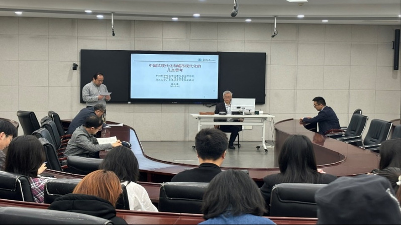讲座上,姚士谋教授以深厚的学术造诣和独到见解,紧密结合城市区域发展的真实案例以及实地考察调研经历,阐述了中国式现代化的新时代含义与特征,并详细剖析了符合中国国情的现代化发展特征、历史演进过程以及当前所面临的挑战。对于我国城市现代化的实施路径,他提出了建设智慧型、智能型、现代化城市的构想。此外,姚教授还就城市群视角下的现代化城市建设、以及我国大中小城市现代化发展不均衡的应对策略等问题,与师生们进行了深入的探讨和交流。