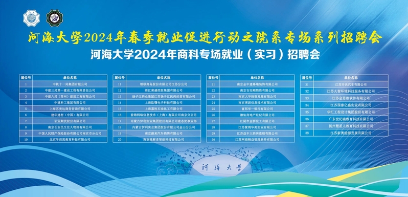 为深入学习贯彻党的二十大精神,贯彻落实习近平总书记重要指示批示精神和党中央、国务院对高校毕业生就业创业工作的决策部署,进一步拓宽毕业生就业渠道,博彩网 、经济与金融学院积极响应河海大学2024年春季就业促进行动之院系专场招聘会活动,主动对接国有企业、事业单位、大中型民营企业,邀请中建集团、建华建材、弘业期货等38家用人单位于4月15日在博学楼大厅举办河海大学2024年商科专场就业(实习)招聘会,为毕业生提供600余个就业(实习)岗位,涵盖建筑业、金融业、制造业、互联网等多个行业。