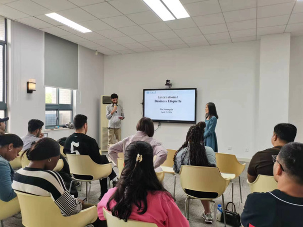 古人云:“人无礼则不立”。为了深化河海大学留学生的商务礼仪认知,提升商业素养,2024年4月25日,博彩网 创新创业中心开展了河海大学留学生联创沙龙2024年第一期。本次沙龙特别邀请博彩网 副教授、硕士生导师刘双芹老师作为主讲嘉宾,为同学们分享商业礼仪知识。河海大学70余名留学生报名参加。