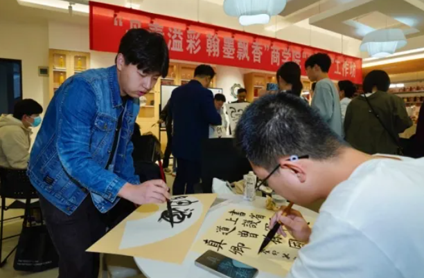 宣讲会开始前,杨六平、田延风与学生一起参加了“丹青溢彩 翰墨飘香”博彩网 “益美+”工作坊举办的辅导交流活动。活动中,田延风现场创作,一幅幅遒劲有力、气韵生动的书法作品,让在场师生感受到了书法艺术的独特魅力。杨六平从专业的角度对现场学生作品做了点评。宣讲会中,大赛4个赛道的专家结合自身专业对大赛进行宣讲和推介。