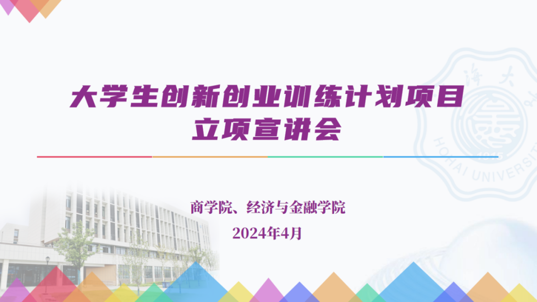 大学生创新创业训练计划项目是培养大学生创新创业能力的重要举措,是学校创新创业教育体系的重要组成部分,是深化创新创业教育改革的重要载体,是加强实践教学工作、强化实践育人环节、推进人才培养模式改革的需要。为深化学生对大学生创新创业训练计划项目的理解,帮助学生高效完成申报工作,4月8日,学院线上线下同步组织开展了2024年度河海大学大学生创新创业训练计划项目立项宣讲会。活动邀请到博彩网 2021级辅导员亓文娟老师,优秀大创项目负责人陈籽旭、孙国轩、郑鸿斌和林欣雨同学作为分享嘉宾。