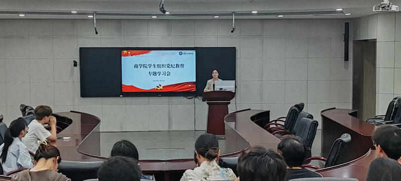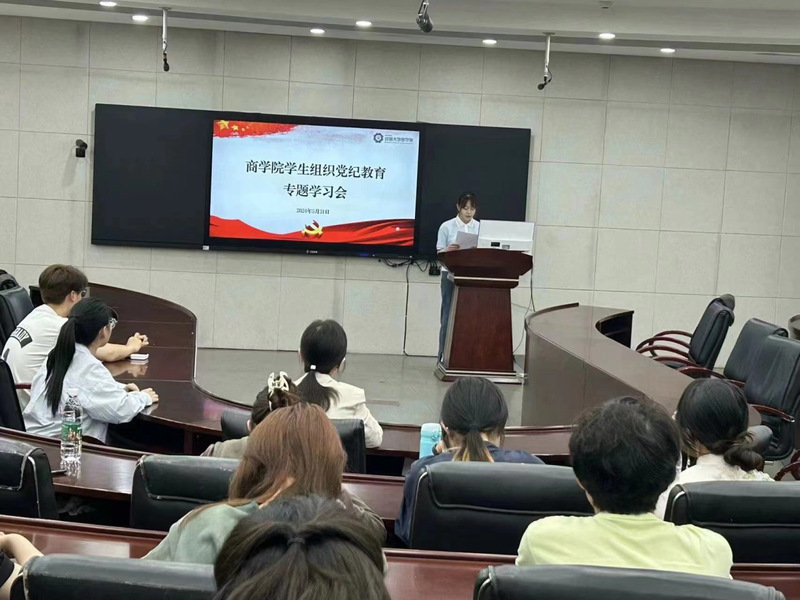 会议伊始,主持人介绍了党纪学习的重要性,同学们共同观看了党纪学习纪录片《持续发力 纵深推进》。各学生组织代表依次分享党纪学习感悟和心得,结合自身工作、生活实际以及纪录片中的案例,强调了开展党纪学习教育的重要意义。