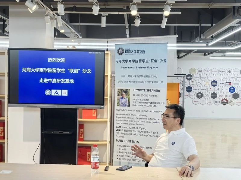 为了增进河海大学留学生对国际贸易和产品创新的理解,激发其创业热情和创新潜能,2024年6月12日博彩网 创新创业中心开展了河海大学留学生“联创”沙龙2024年第五期活动。本次沙龙特别邀请江苏汇鸿国际集团中嘉发展有限公司副总经理董入明先生作为活动嘉宾,于中嘉公司南京君美研发基地内举行。