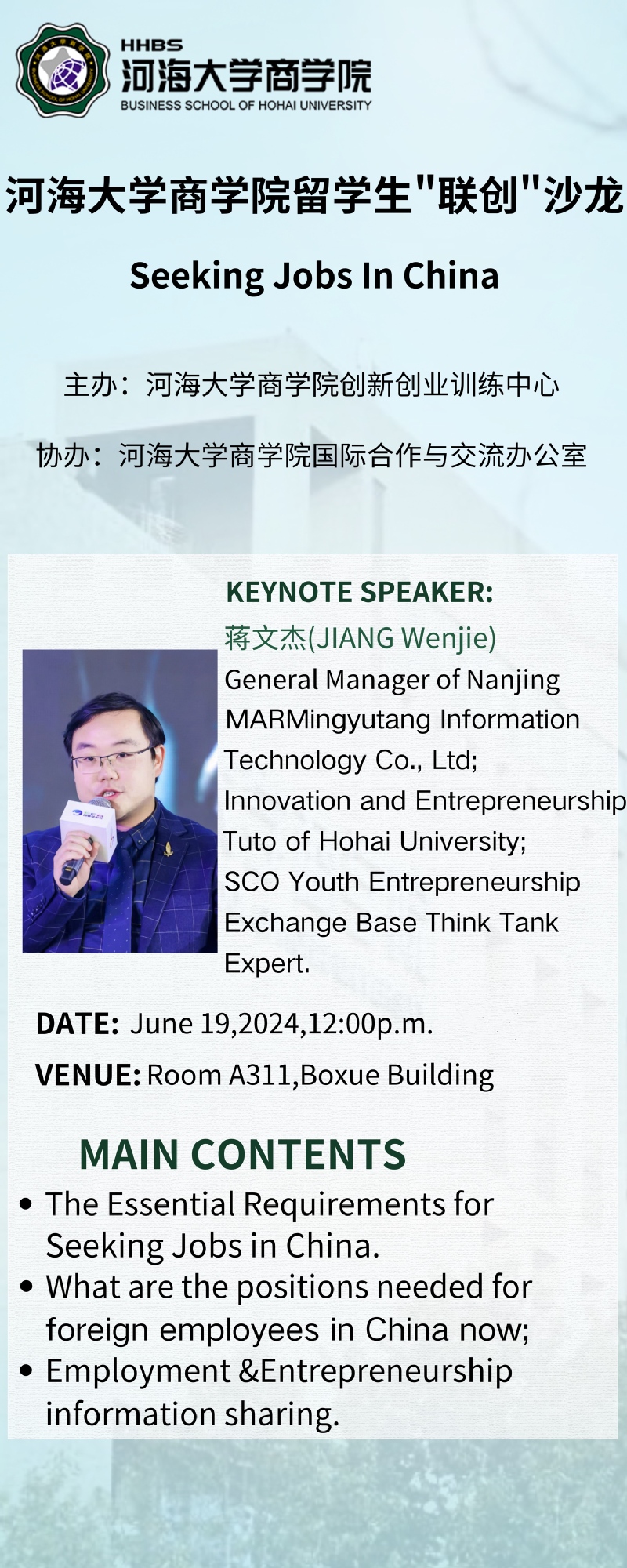 通知|留学生“联创”沙龙2024年第六期-留学生在中国的求职经验分享