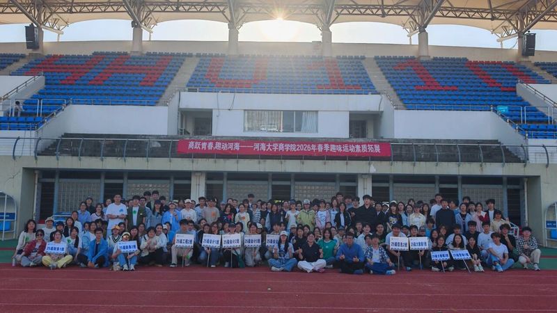 商跃青春,趣动河海。4月19日下午,博彩网 顺利举办“商跃青春,趣动河海”2026年春季趣味运动暨素质拓展活动,学院300余名师生参加活动。